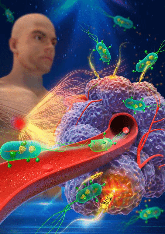细菌疗法是一种以靶向肿瘤部位,通过激活机体抗肿瘤免疫应答为目的治疗方法,在治疗恶性肿瘤方面显示了巨大的潜力。早在一个世纪前,癌症免疫治疗之父威廉·科利博士就通过注射产脓链球菌治疗癌症患者。近年来,研究表明,肿瘤微环境中由于缺氧、富营养化和免疫特异性等原因,厌氧菌可优先定植于肿瘤部位,并通过增强抗癌免疫反应阻断肿瘤生长。其中减毒沙门氏菌,由于良好的抗肿瘤效果而进一步推进到临床Ⅰ期试验。然而,由于肿瘤抑制率低和剂量依赖性副作用,临床试验失败。这表明,单独进行细菌治疗不能满足高效和生物安全的要求。