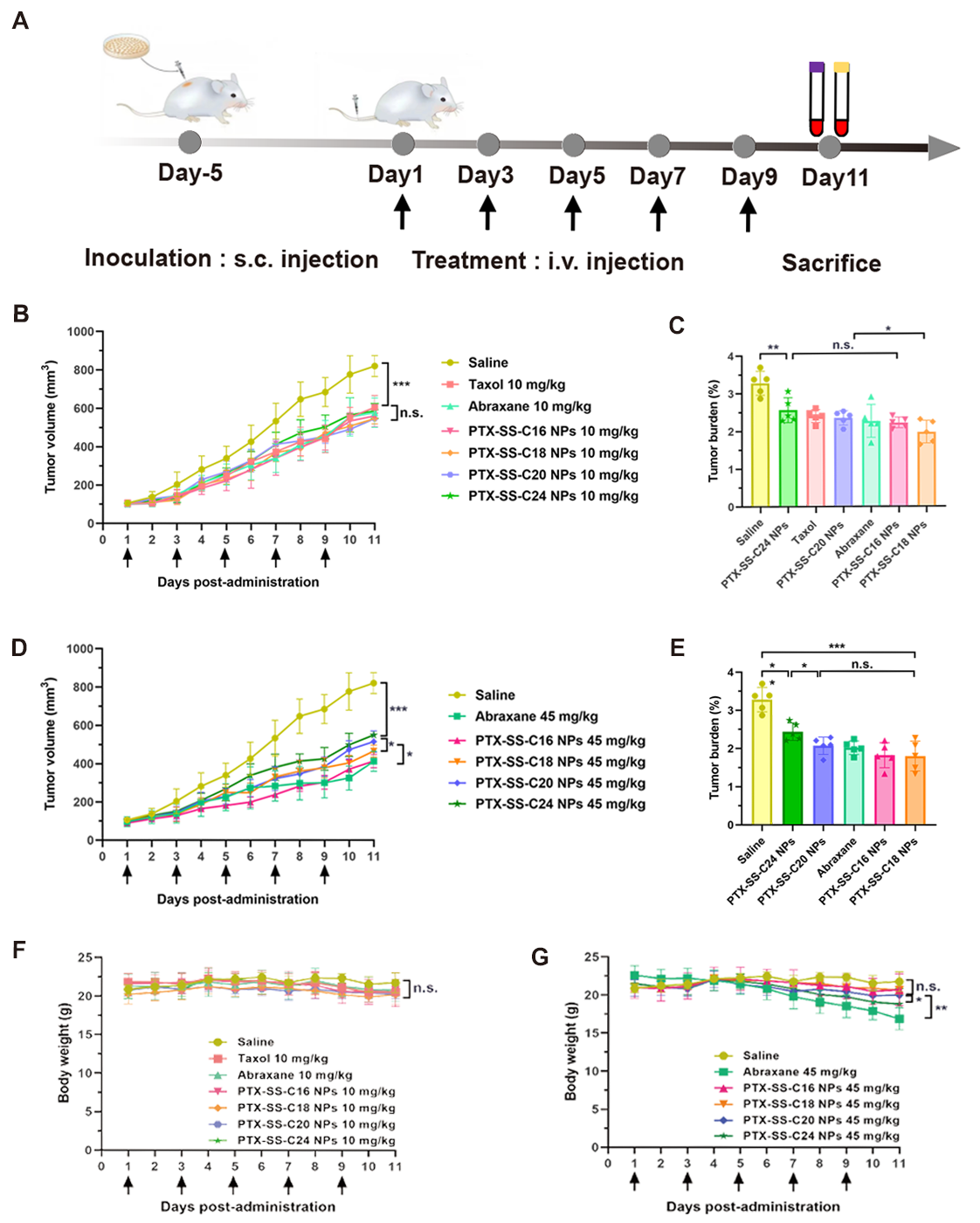 图1. 修饰模块调控紫杉醇前药纳米组装体的抗肿瘤作用和耐受性