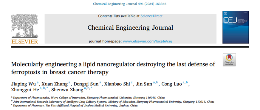 近日,beat365英国官网网站何仲贵教授/张申武教授在Chemical Engineering Journal杂志(IF = 13.3)在线发表题为“Molecularly engineering a lipid nanoregulator destroying the last defense of ferroptosis in breast cancer therapy”的研究性论文,报道了一种通过调节膜脂饱和度放大铁死亡驱动的抗肿瘤纳米药物递送策略。