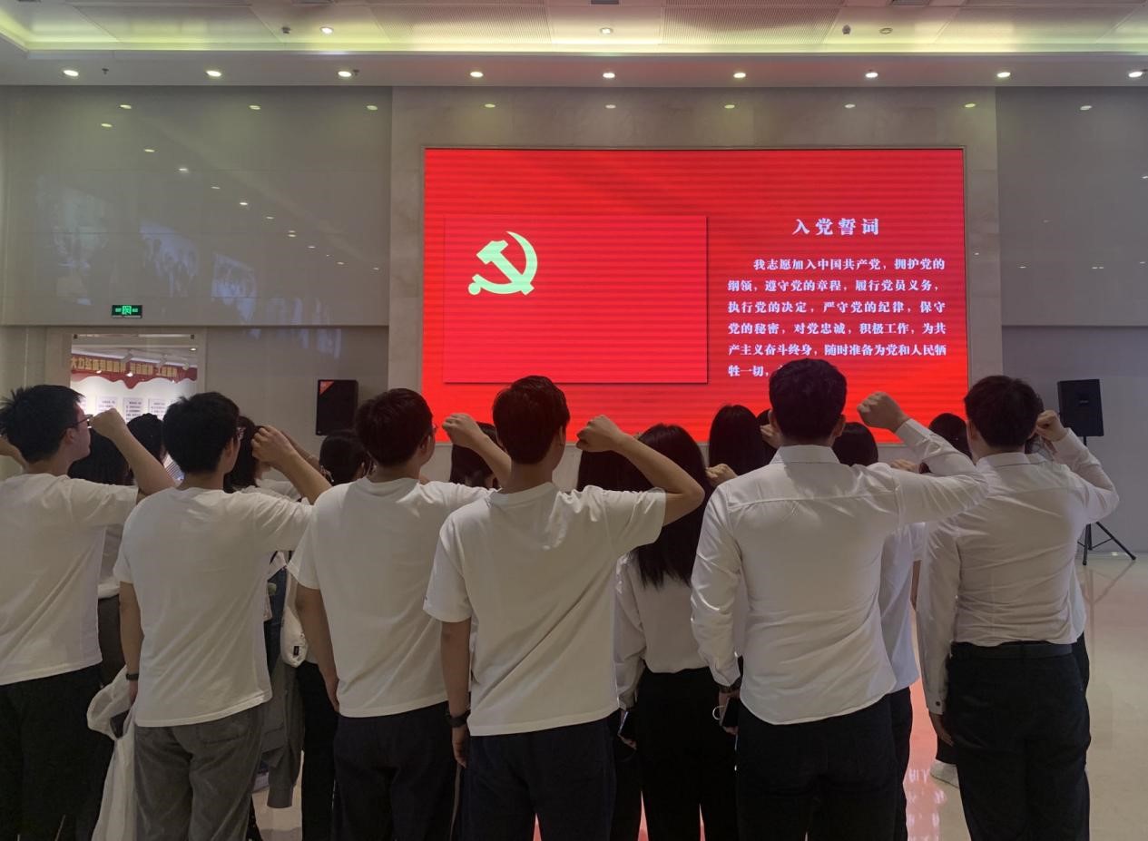 在党支部书记的带领下,全体研究生党员一起高举右手,面对鲜红的党旗再次庄严宣誓,表达为党和中国特色社会主义事业奋斗终身的决心和愿望。通过此次劳动模范纪念馆的参观学习,党员同学们进一步坚定了理想信念,增强了责任感和使命感,同学们纷纷表示在今后的生活和科研中要发挥青年党员的先锋示范作用,在主题教育和振兴新突破行动中发挥榜样力量,为打好打赢新时代东北振兴、辽宁振兴的“辽沈战役”贡献青春力量。
