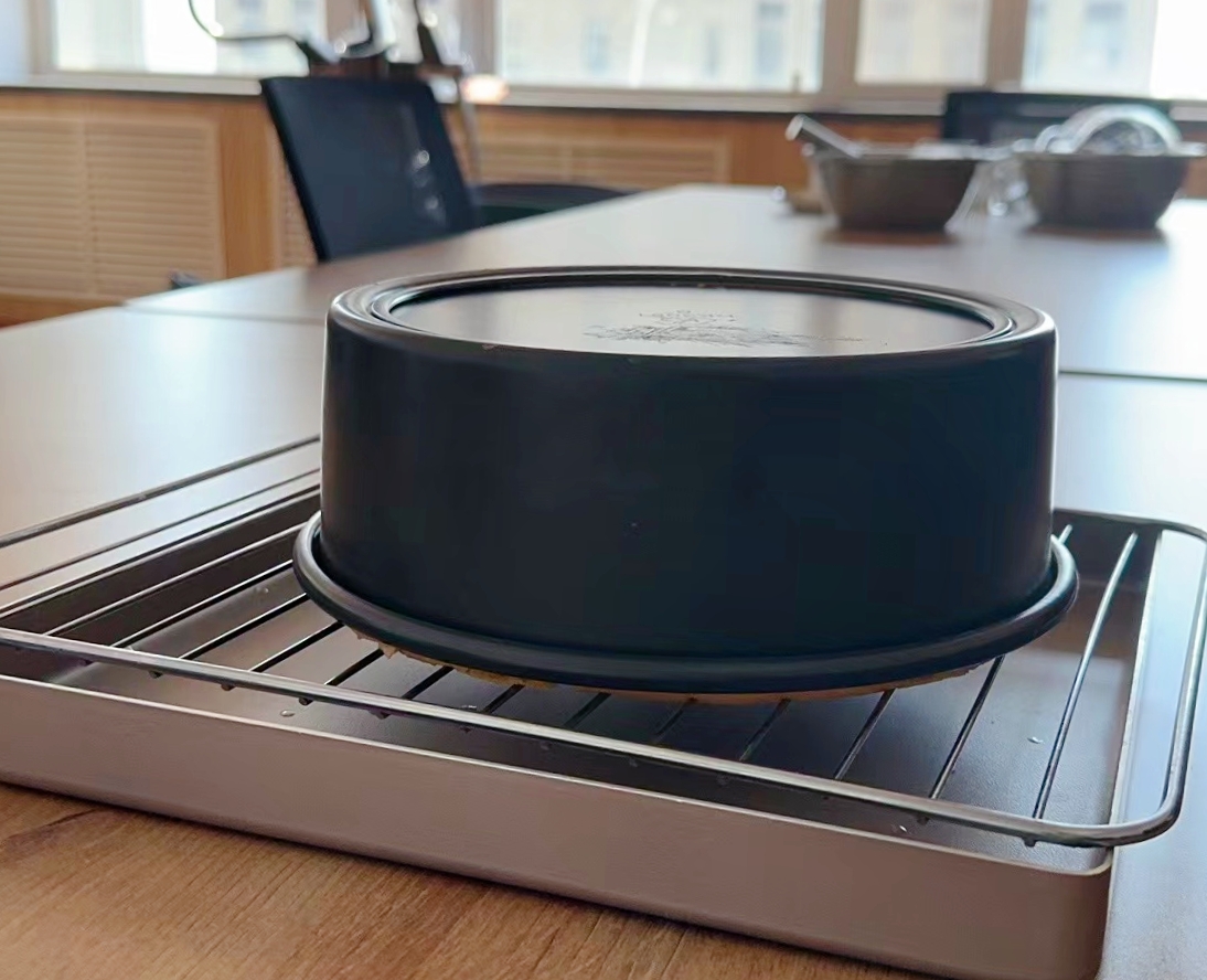 张红蕾讲解所需食材及使用数量、配比,依次演示了搅拌面粉糊、打发蛋白、和匀、烤制等各个制作流程。3个小时后色泽金黄、香气扑鼻的成品蛋糕脱模而出。