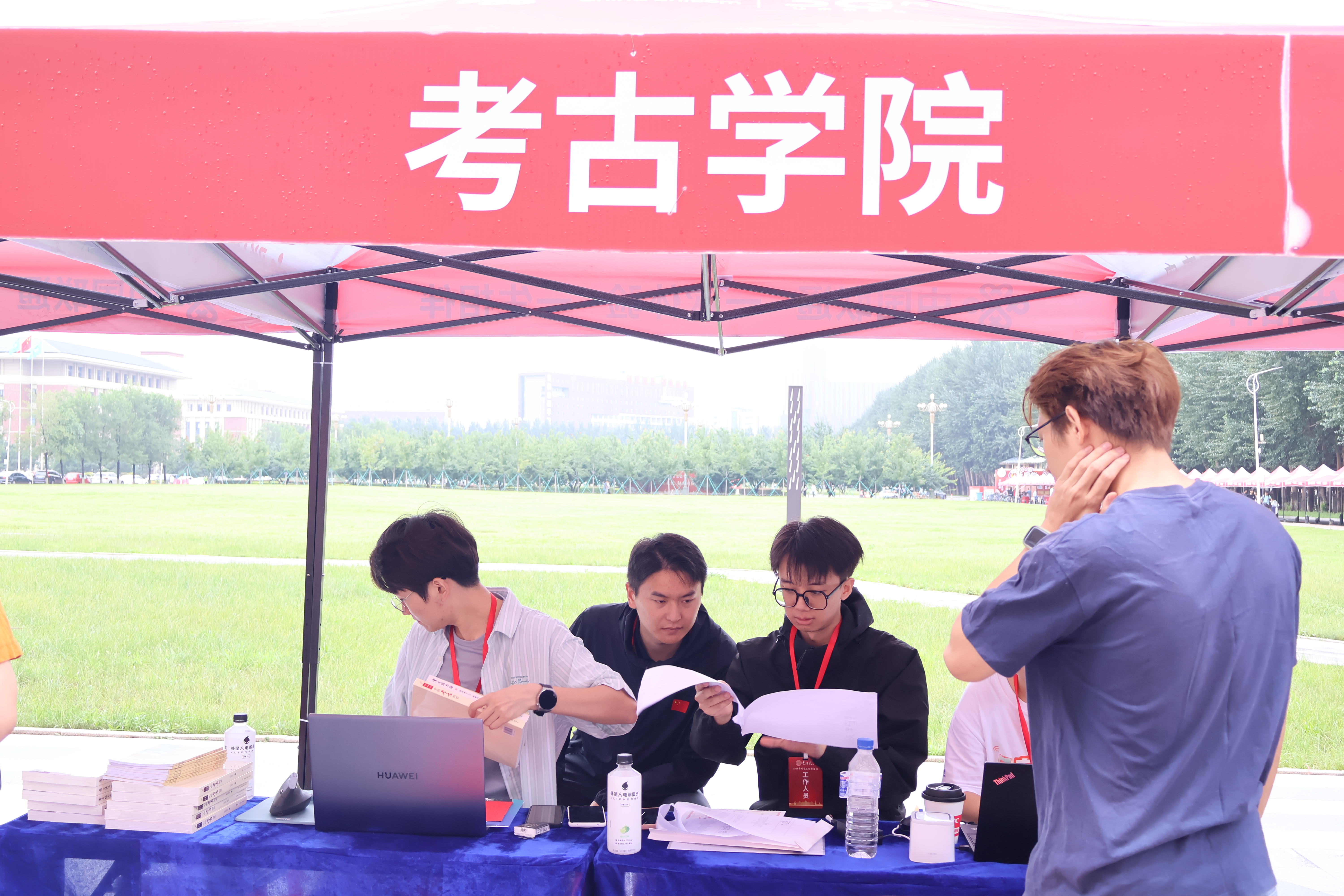 8月21日上午7时,迎新活动准时在北苑四公寓门前开始。细雨如丝,新生们推着行囊,满怀期待地走进bat365在线平台登录。迎新志愿者们穿梭在雨幕中,为新生撑伞指路,让初遇的温暖直抵心田。迎新工作人员饱含热情、有条不紊地引导同学完成入学报到证收取、人脸识别信息确认、材料袋发放、礼品赠送等环节。在赠礼部分,学院贴心为新生们准备了《考古张忠培》与《中国考古纲要》两本书籍。期望同学们向老一辈考古人学习,继承并发扬“择一事,终一生”的钻研品质。报到环节完成后,志愿者指导新生进入公寓办理住宿手续。在简单轻松的报到与入住流程完成之后,新生们便真正成为吉大校园的一份子。