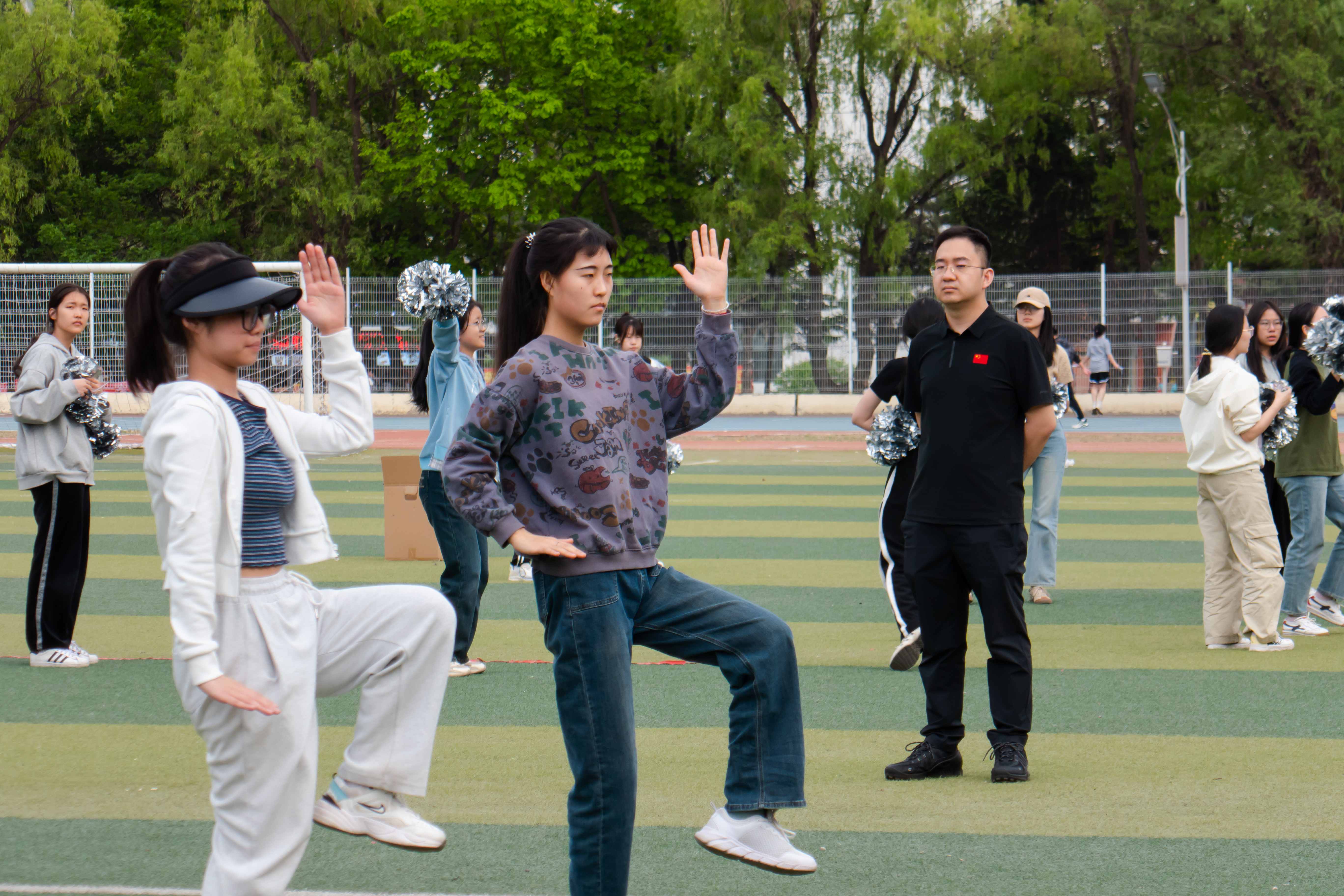 5月9日,院党委副书记侯建峰老师,辅导员马嘉男、邱泽涵老师前往训练场地,陪伴并跟进同学们的训练。老师们对太极训练成果称赞有加,并鼓励同学们相互学习,团结协作,精益求精。