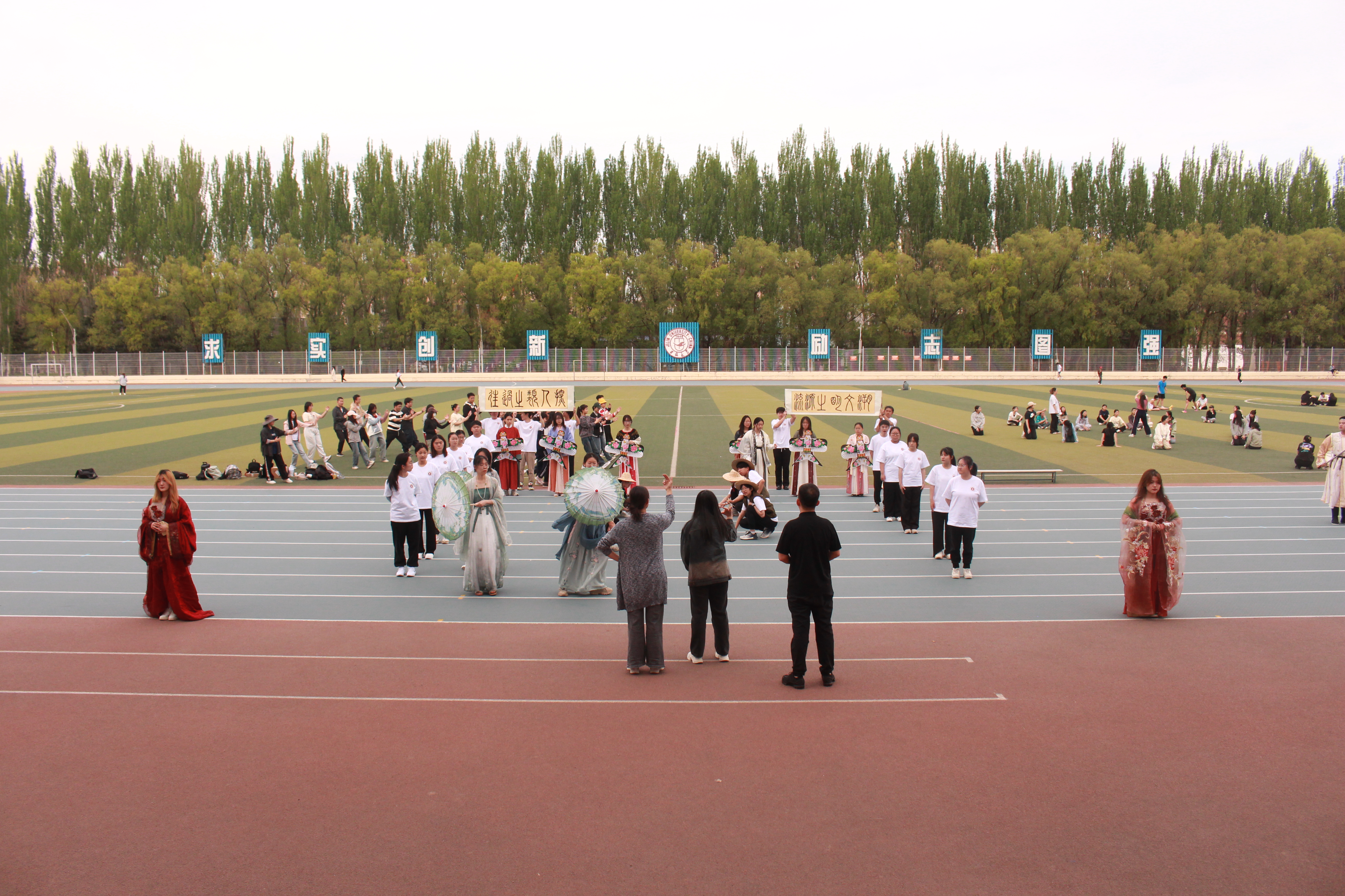 身着汉服的同学不断调整纸伞与纸鸢的展示方式,以期呈现更好的视觉效果。模拟发掘的同学精益求精,修改动作错误,展现考古学人求实求真的严谨态度。