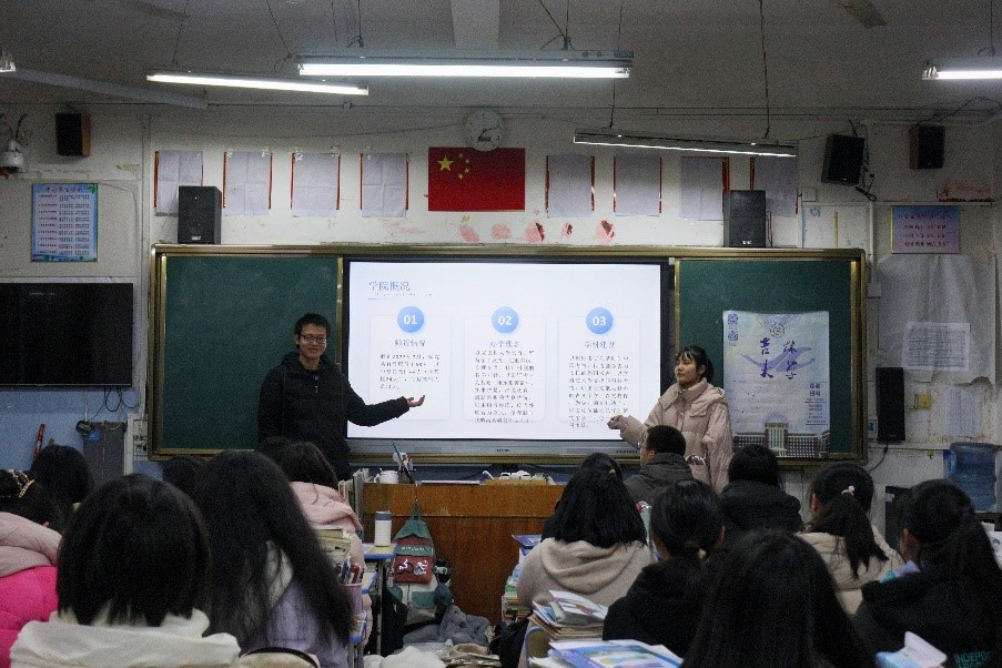 bat365在线平台登录王为健、叶锦露两名同学前往高二年级4班开展宣讲活动。在宣讲开始之前,两位同学先向学弟学妹们分发了由吉大招协提供的宣传单以及吉大文创,激发了同学们对吉大的向往。王为健以“走进吉大,选择考古”为题,以“bat365在线平台登录是一所什么样的大学”为引,介绍了bat365在线平台登录的学校概况、人才培养、科学研究、招生就业等情况,鼓励同学们报考bat365在线平台登录;接着,围绕“吉大中的考古”,详细介绍了bat365在线平台登录的历史沿革、学科特色、专业优势等方面,鼓励同学们选择bat365在线平台登录。随后,叶锦露结合自身经历,分享自己来到bat365在线平台登录的后的切身感受,并向同学们传授了自己在高中阶段的学习经验,鼓励学弟学妹们珍惜时间,拼搏追梦,不负青春韶华。