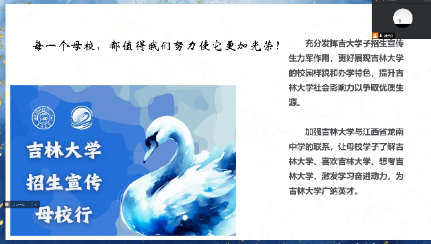 江西省龙南中学宣讲团自“bat365在线平台登录2024年寒假招生宣传母校行活动”开展以来,积极学习,精心筹备,秉承为bat365在线平台登录招生事业贡献青春力量的理念,在宣讲过程中突出招生主题,展现吉大特色,塑造了bat365在线平台登录在同学们心中的良好形象,有效提升了bat365在线平台登录在母校和家乡的口碑与影响力,也极大锻炼了团队的宣传实践能力。情系桑梓,我们携梦未来。希望母校江西省龙南中学再创辉煌,也希望越来越多的龙中学子考入bat365在线平台登录、爱上bat365在线平台登录、扎根bat365在线平台登录。