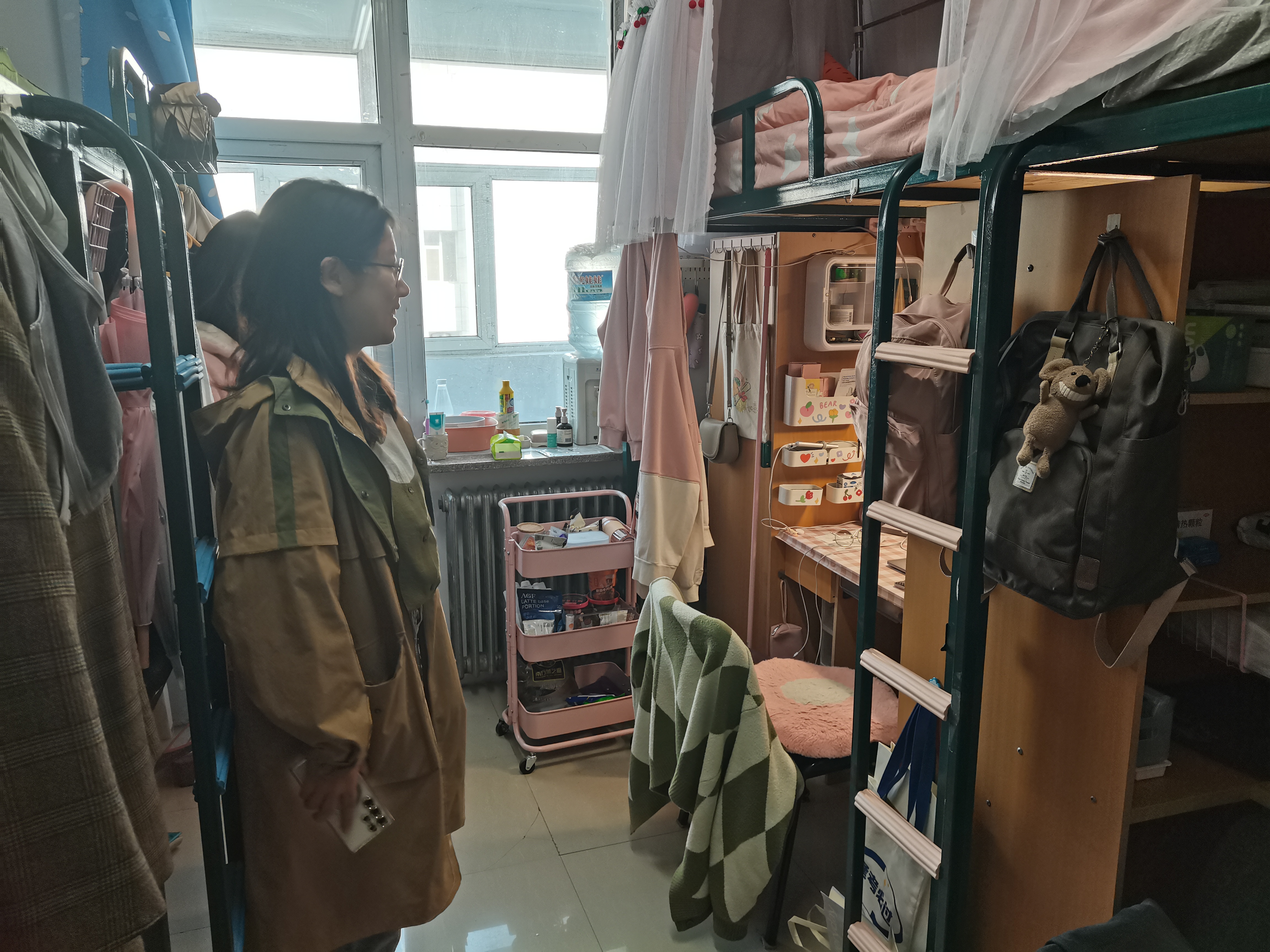 三位老师在走访寝室中对每个寝室、每位同学在安全用电和卫生环境等几个方面进行检查和打分。就检查结果来看,大部分同学能够自觉维护干净整洁的宿舍环境,积极响应学校号召,消除可能引发宿舍危险的各种隐患。同时,针对个别宿舍地面较为脏乱,床铺不整洁,桌面上的物品摆放杂乱等问题提出了整改要求。