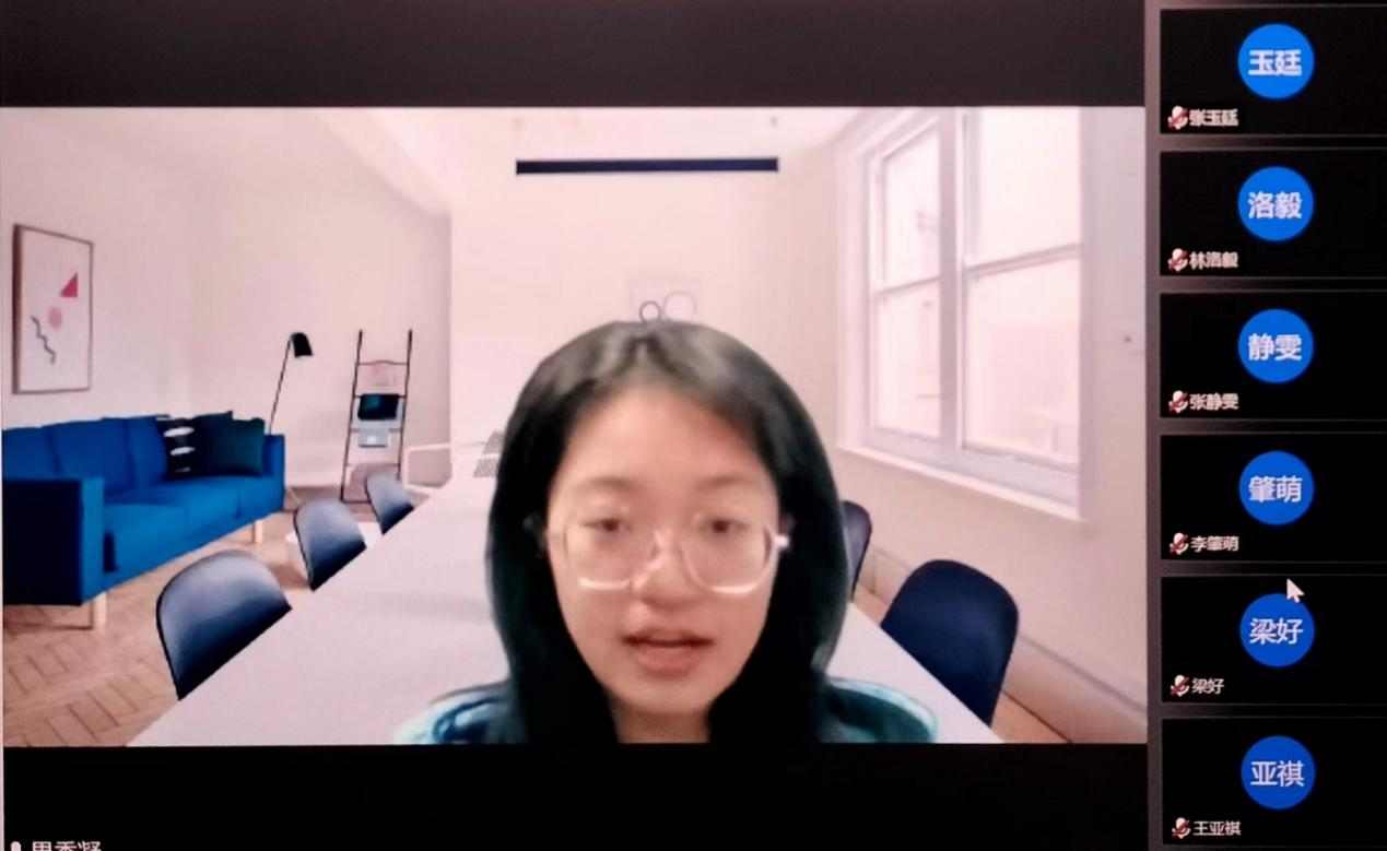 接下来,学生会的四位部门负责人围绕学生会服务同学的宗旨,面向同学全面发展的个人需求,进行各具特色的学生会部门介绍。学生会主席团成员兼心理健康部负责人唐诗雨介绍了部门举办的固定活动和创新活动,说明了部门关注学生心理健康的核心任务;学生会主席团成员兼校园文化部负责人张航介绍了部门一年来举办和合作举办的各项文体活动,展现了部门在丰富同学校园生活方面的导向作用;综合事务部负责人吴芊妤介绍了部门承担的档案、活动经费等方面的记录上报任务,点出了部门承担的后勤保障工作;科研学术部负责人陈嘉琦介绍了部门组织的形式多样的学习、学术分享活动,讲述了部门活动帮助同学适应学习生活、迎接学习挑战的重要目的。