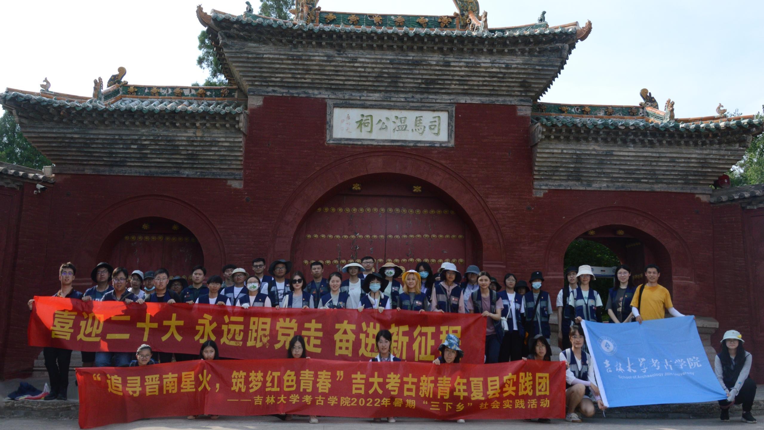 2022年8月7日,该系列活动第六期“赓续廉政血脉,传承家国情怀”参观司马温公祠活动如期开展。指导老师教师马嘉男、王震、武松带领吉大考古新青年夏县实践团全体成员前往位于山西省运城市的司马温公祠进行学习调研。