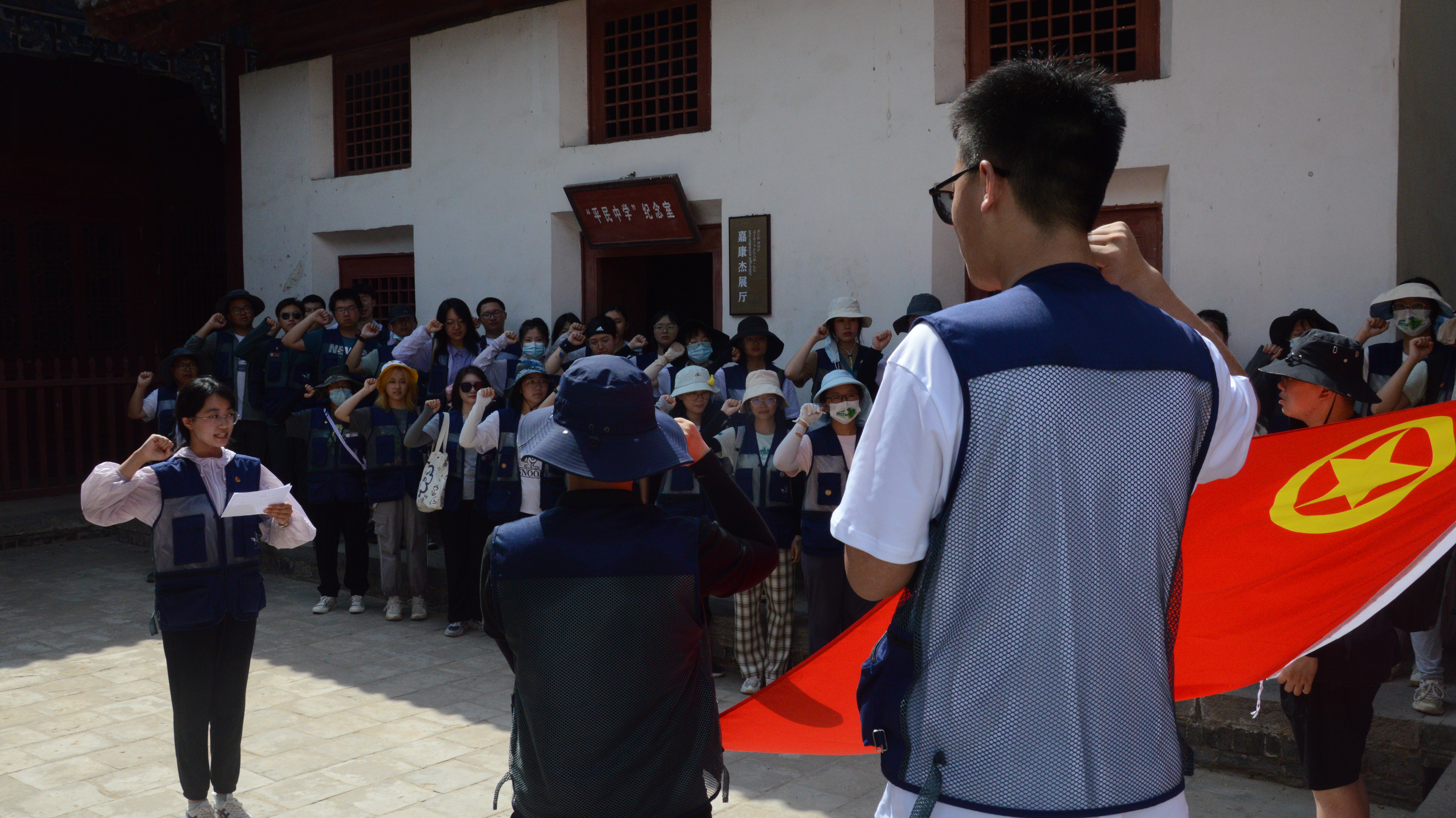 如同这里建筑的走势一样,当年革命先烈们以此为中心在晋南地区开展的革命活动也是一浪更比一浪高。1922年,革命先烈嘉康杰在此创办了平民中学,为革命培养了一批有生力量,领导晋南人民开展了轰轰烈烈的革命斗争,被后人誉为晋南革命的摇篮。在讲解员的精彩讲解下,我们游览了嘉康杰烈士革命事迹图文展,参观了嘉康杰等革命先烈当时秘密印制文件和传单的三拐窑,在平民中学教室内感悟革命先烈嘉康杰播撒革命火种的壮怀与激情,革命先烈那种不畏白色恐怖、不怕流血牺牲、坚定革命理想、勇于开展斗争的革命精神深深感动了我们。在河东特委革命旧址,实践团队举行了重温入党、入团誓词仪式,宣誓活动鼓舞人心、凝聚力量,党员团员青年们更加坚定了理想信念,增强了责任感和使命感。重温誓词,就是不忘初心、恪守承诺。作为一名中共党员,作为一名共青团员,我们要不断坚定共产主义理想信念,始终牢记入党、入团誓言,在考古与文物保护阵地上发挥吉大考古新青年的模范带头作用,为祖国的繁荣富强贡献自己的绵薄力量!