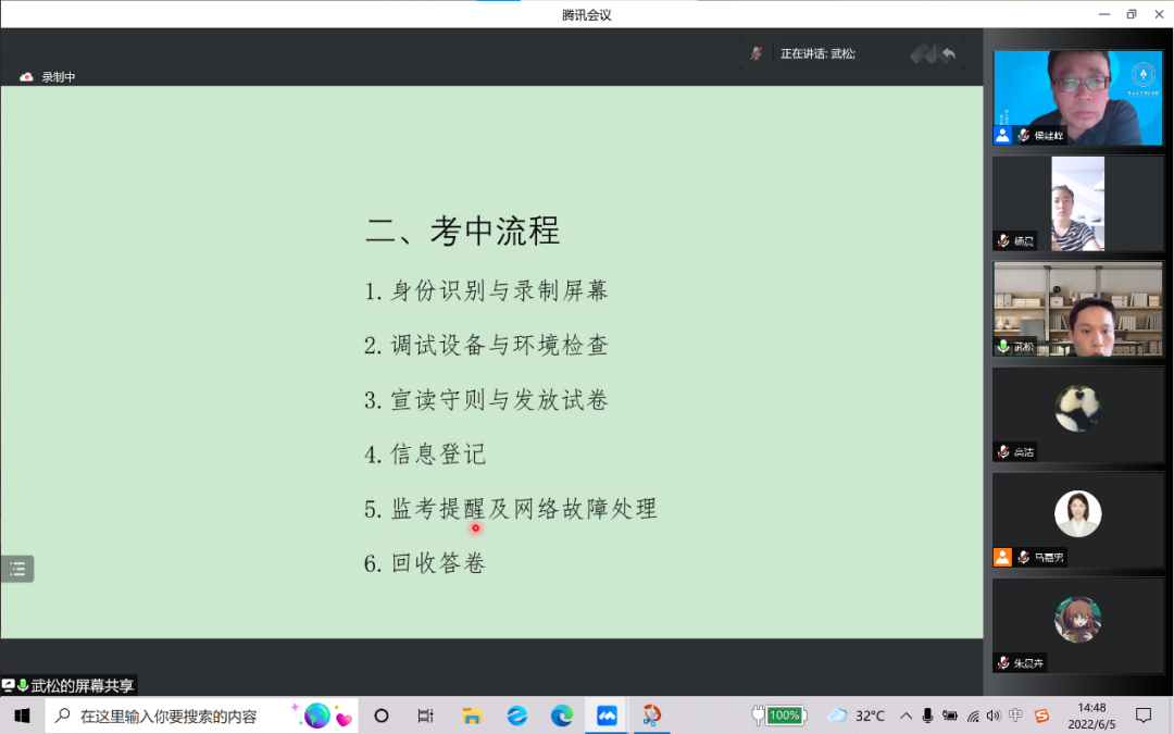 期末将至,为加强学风、考风建设,营造公平公正的考试氛围,6月5日下午,bat365在线平台登录通过腾讯会议召开了2022年春季学期期末考试线上培训暨考风考纪教育大会。本次会议的主要内容是开展期末考试考风考纪主题教育,进行线上考试操作培训。会议由bat365在线平台登录党委副书记兼副院长侯建峰主持,bat365在线平台登录副院长段天璟教授、学生工作办公室主任杨晨、学院教师武松,分别作了考试纪律宣讲和技术示范。学院2020级、2021级全体本科生参与了会议。