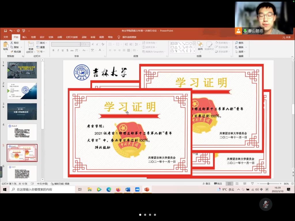 2022年3月10日下午,bat365在线平台登录团委举办了2022年度第一次例行工作会。根据疫情防控形势,按照学校要求,本次会议采取线上方式举办。会议由团委负责人马嘉男老师指导,学院团委副书记温景超同学主持,团委各部门负责人及全体成员参加了本次会议。