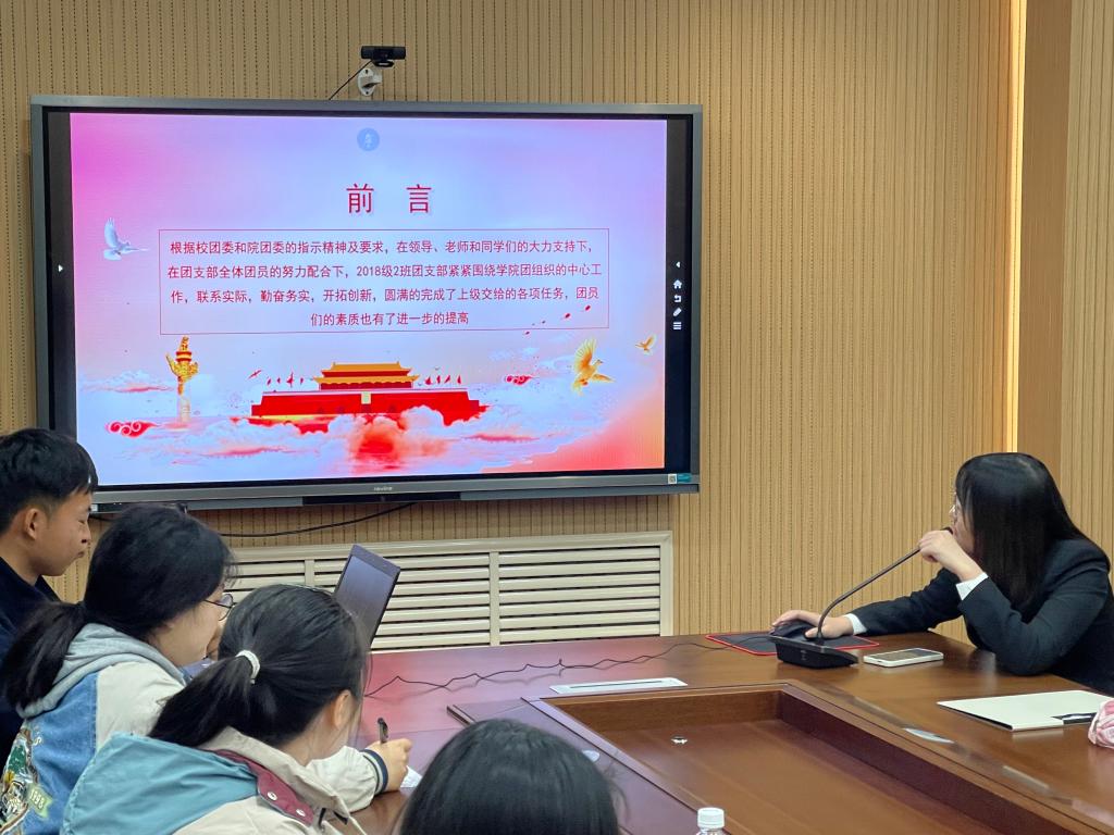 为提高团支部规范化建设水平,提升基层团组织的组织力,推动学院基层团组织在班子建设、团员管理、活动开展、制度落实、作用发挥等方面的工作不断改善提高,bat365在线平台登录团委积极响应学校关于“做好2021年基层团支部‘对标定级’工作”的号召,于12月10日在正新楼1608会议室举行了2021年本科生团支部“对标定级”工作评审会。本次评议会由bat365在线平台登录18级、19级、20级各班团支书、团委各部门负责人及杨晨老师、马嘉男老师、靳涛老师参加。