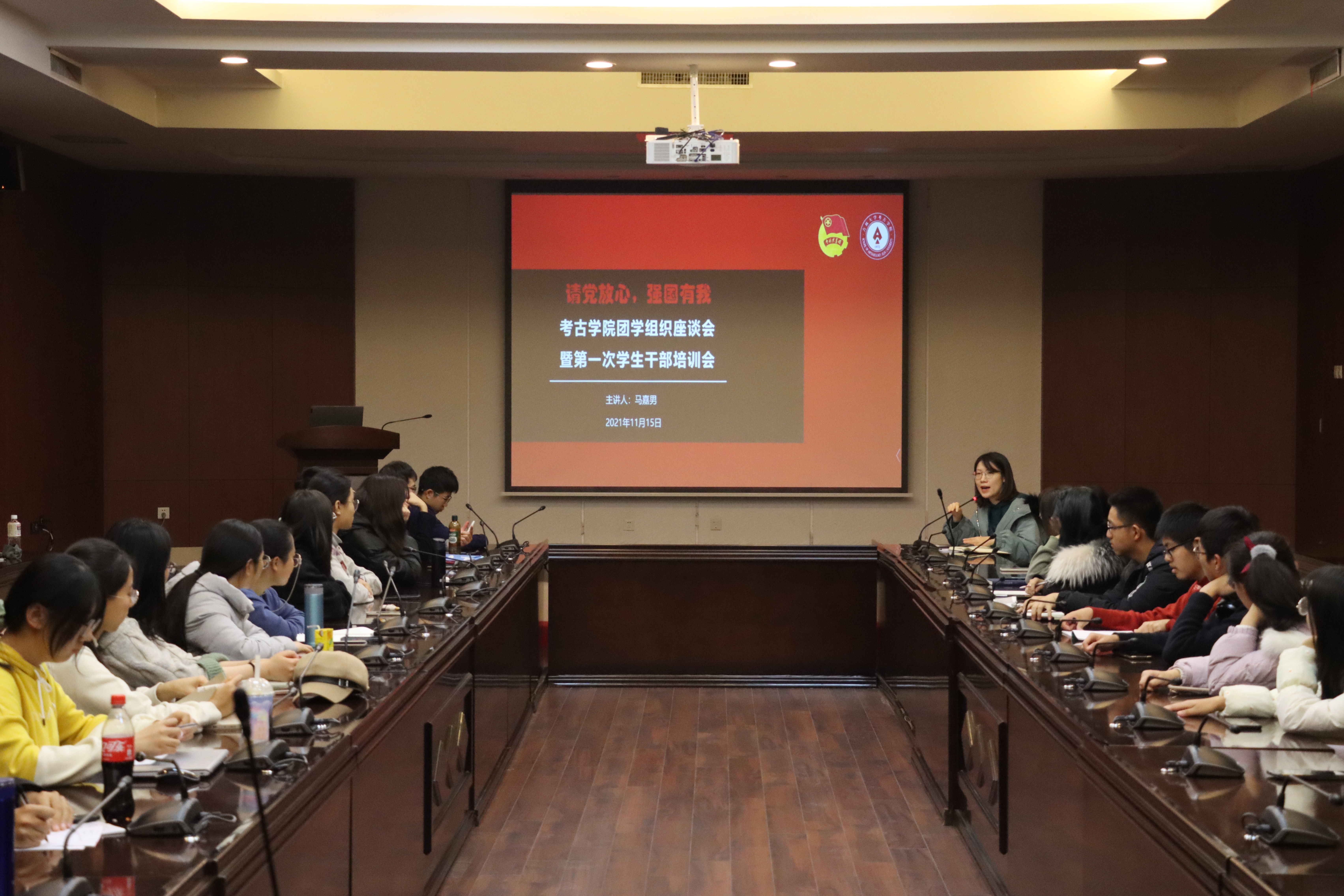 为深入学习贯彻党的十九届六中全会精神和习近平总书记致仰韶文化发现和中国现代考古学诞生100周年贺信精神,进一步加强bat365在线平台登录团学组织建设,bat365在线平台登录团校于11月15日下午在匡亚明楼第一会议室举办了团学组织座谈会暨第一次学生干部培训会。本次会议由马嘉男老师主持并担任主讲人,辅导员助理杨昌盛及全体大一、大二团学组织同学参加会议。