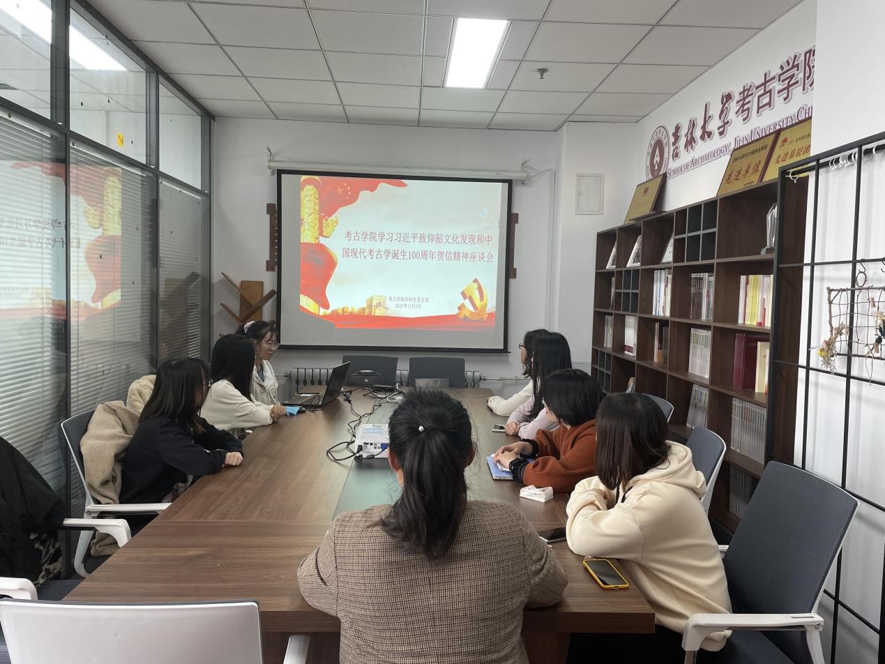 会议分发了习近平总书记关于考古工作的贺信和讲话合集,共同观看了习近平总书记致贺信的新闻报道,学习了习近平总书记致仰韶文化发现暨中国现代考古学诞生100周年贺信全文。与会同志深受启发,倍感鼓舞,先后畅谈了学习贺信的感想。大家纷纷表示,作为新时代的考古学子,我们在考古学习和实践探索中要以马克思主义为指导,提升专业素养,厚植家国情怀;在考古发现和学术研究中关注时代、关注社会,寻根固本、鉴往知来,努力建设中国特色、中国风格、中国气派的考古学;保护好、传承好共同的历史文化遗产,在保护中留住文化根脉,在传承中维系民族精神;用考古成果和历史研究成果不断增强民族凝聚力,展现民族自信心与自豪感,为续写中华文明新的辉煌作出更大贡献!