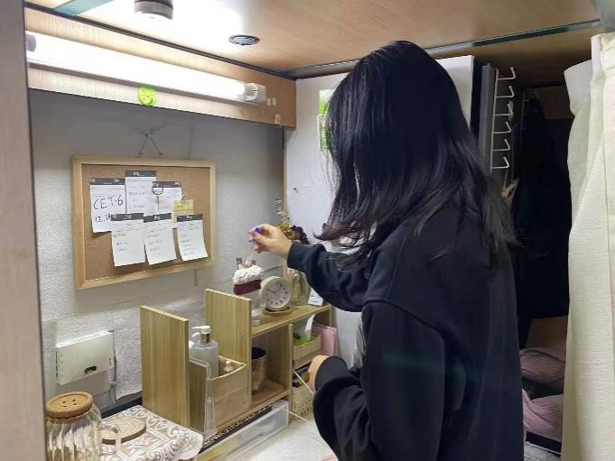 在活动通知发布后,同学们以极大的热情积极投身于寝室卫生的清扫活动中,纷纷拿起身边的抹布、扫把等工具,对寝室进行了彻底的清洁工作。各年级同学各显其能,以集体的智慧和劳动打造了一个个干净明亮、温馨整洁的寝室。尽管2018级的同学正面临考研与就业的压力,但也积极参与其中,对寝室环境进行了彻底清扫,对个人物品进行了归置。2020级的同学同样以饱满的热情投入到寝室劳动活动中,不仅对整体卫生环境做了清洁,而且对自己的书桌进行了装饰,展现了自己的创意。值得关注的是,2021级新生同学虽然仍处在紧张劳累的军训之中,但大家仍然积极利用闲暇时间整理内务,打扫卫生。参与寝室劳动主题教育的同学乐在其中,不时能在水房看到倒垃圾涮拖布的同学,走寝的时候也会看到同学在积极归纳个人物品。大家的书桌整洁有序,书籍排列整齐,被子总是工整的叠到床脚。除了经常打扫的地板,更对寝室门、窗户、窗台以及各自的组合柜进行了深度清扫。