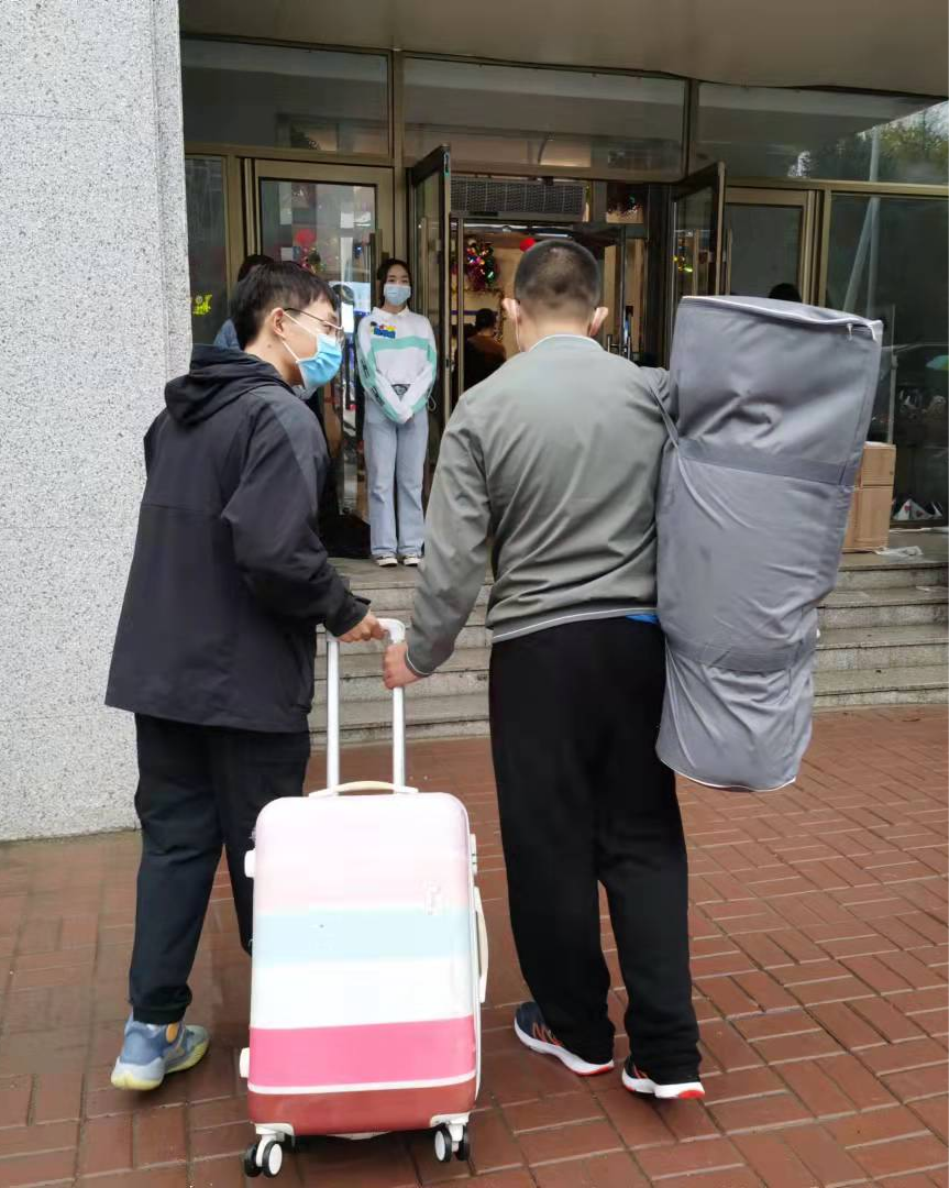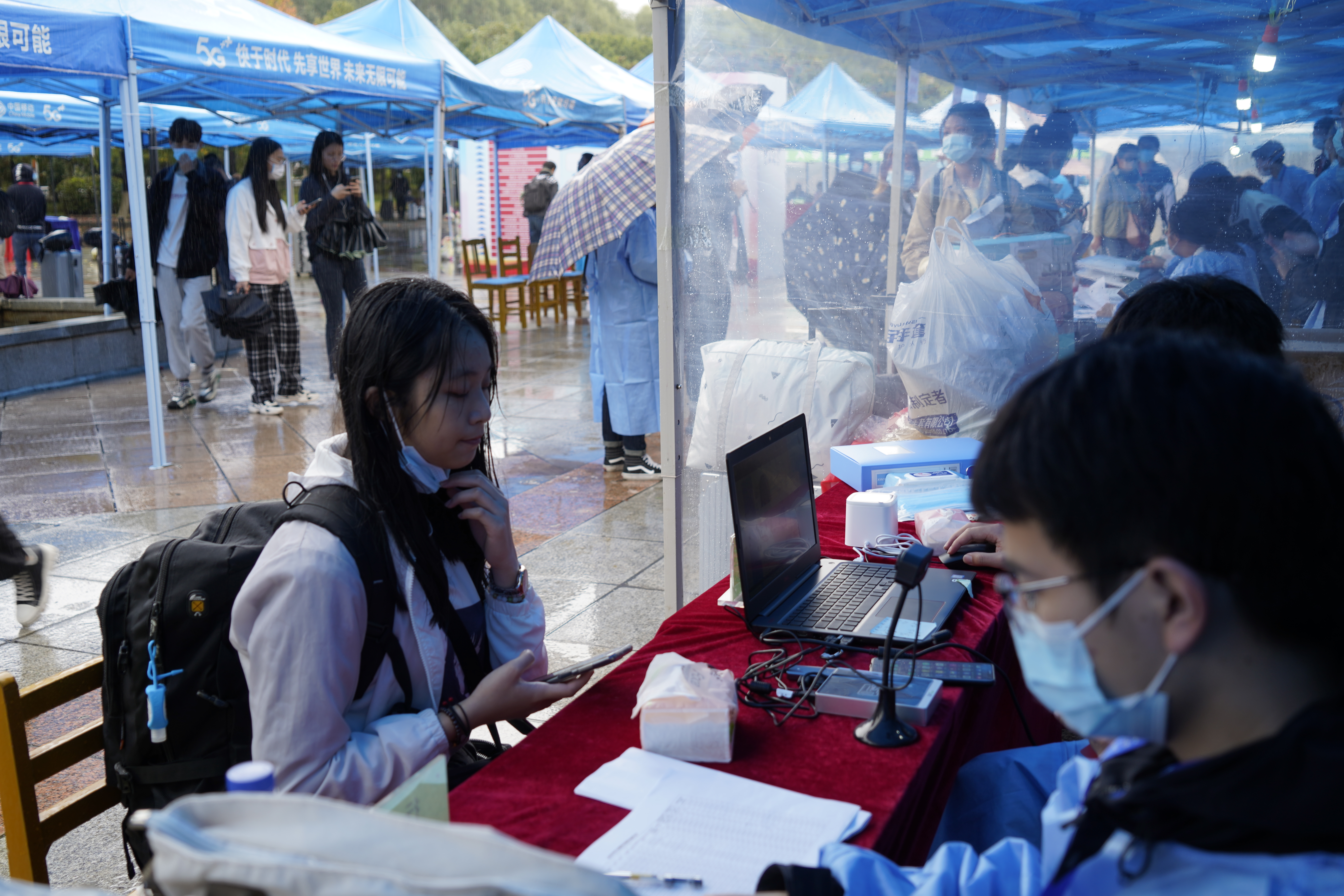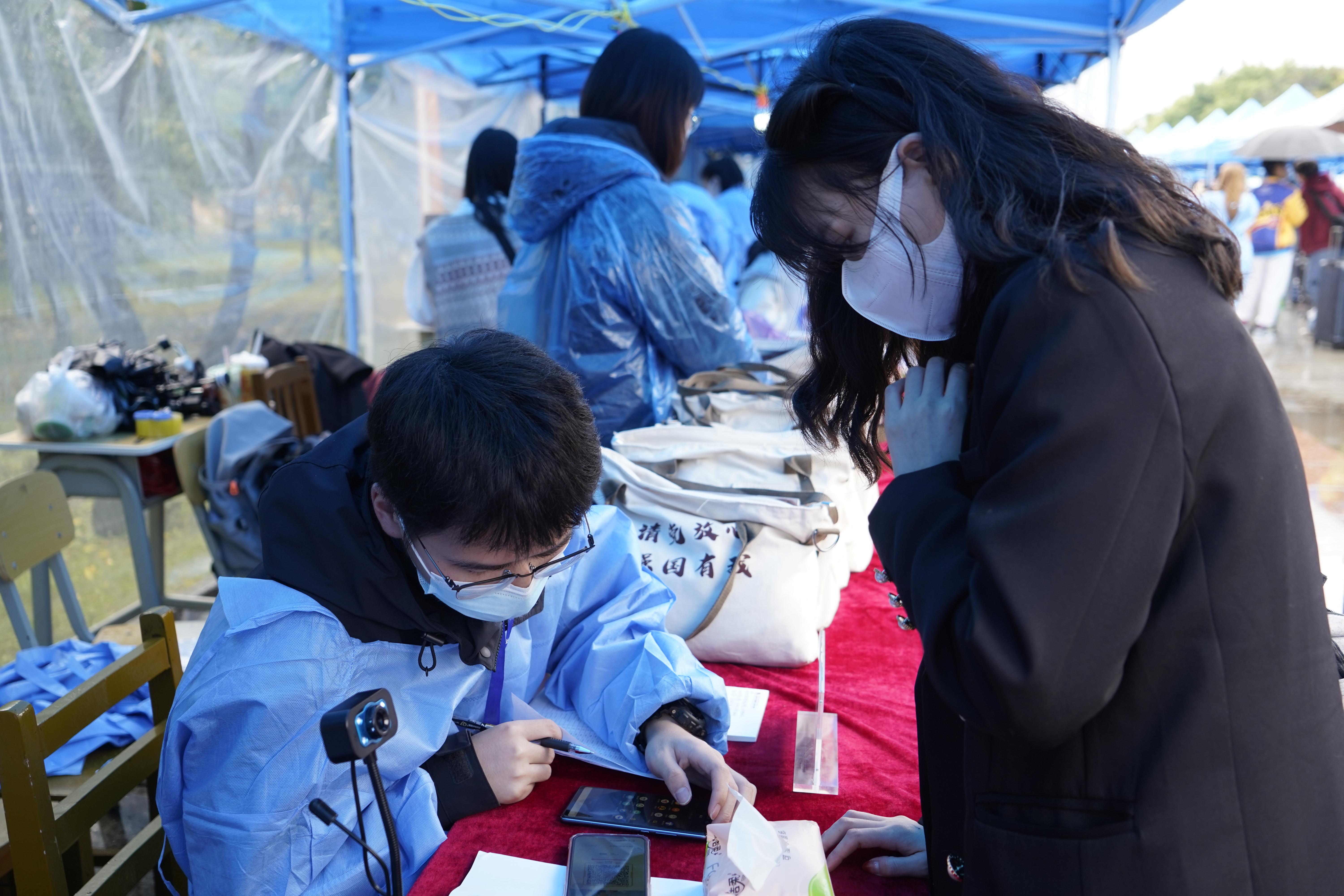 清晨秋风习习,裹挟着阵阵秋雨,给五月花广场平添了几分寒意,但这丝毫未曾影响现场的热烈气氛,辅导员助理和志愿者们仍以最饱满的热情认真整理迎新物资,有序布置迎新场地。上午6时,场地布置工作全部完成,现场全体师生准备就绪,期待良久的迎新工作正式开始!随着新生们陆续前来报到,迎新工作也如火如荼地开展起来。辅导员助理们细致核实每一位新生的信息,帮助新生完成各项报到手续,并逐一发放新生材料包。期间,辅导员马嘉男老师亲切询问新生来校方式与家庭情况,并贴心叮嘱加强自我防疫保护、增添衣物预防感冒等。随后,新生们由负责对接的志愿者引领前往宿舍。一路上志愿者们主动为新生们搬运行李,详细解疑答惑,帮助新生们尽快熟悉校园。在新生报到的整个流程中,每一个环节都有师兄师姐们的指导和陪同,他们亲切的态度和热情的帮助,很快就拉近了彼此之间的距离,让新同学在全新的环境中感受到了关爱与温暖。