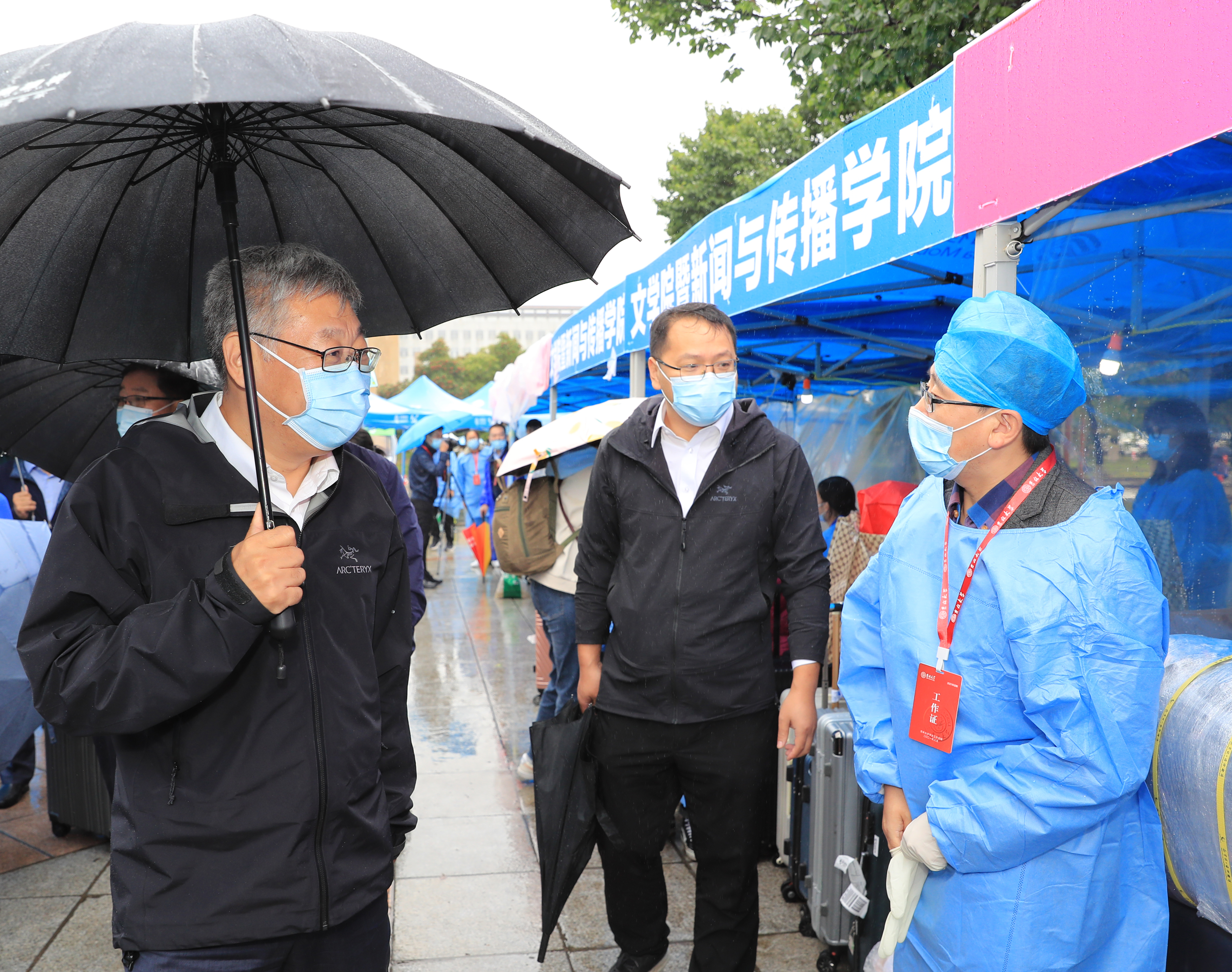 当日下午,学校领导一行莅临迎新现场视察并指导迎新工作。其间,领导们与bat365在线平台登录的师生进行了亲切的交谈,对学院为每位新生准备“考古盲盒”,并将每份“考古盲盒”提前送至新生宿舍这一新颖形式表示了赞许。迎新现场的师生备受鼓舞,深刻地感受到了学校对于bat365在线平台登录的重视以及对同学们的关怀与期望。