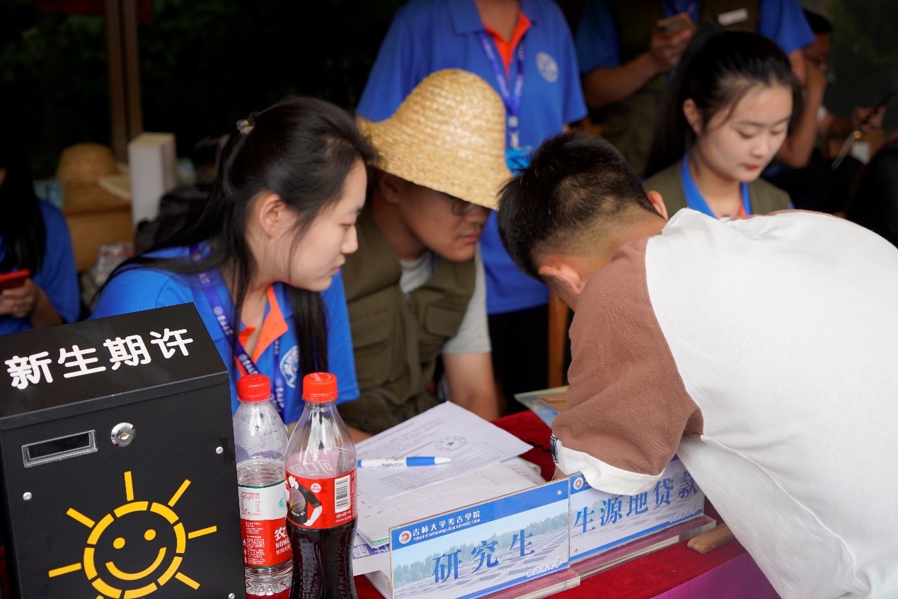 当天上午,bat365在线平台登录党委书记杨振斌一行来到了bat365在线平台登录迎新现场,与bat365在线平台登录师生亲切会谈,并在明信片上写下了对于bat365在线平台登录的寄语。bat365在线平台登录党委书记李宏伟,副书记侯建峰,学生工作办公室主任杨晨等陪同并向书记进行了汇报。当天下午,中国科学院院士、bat365在线平台登录校长张希教授一行到达迎新现场,对bat365在线平台登录的迎新工作进行视察与指导。bat365在线平台登录党委书记李宏伟,副书记侯建峰,学生工作办公室主任杨晨等陪同并汇报了本届招生的概况。张希校长细心地询问了迎新工作的进程,并表达了对正在进行田野实习的2017级考古学生的殷切期盼,以及对bat365在线平台登录越来越好的期许。在看到我们赠送的明信片之后,张希校长很满意,并对我们的创意表示赞赏。
