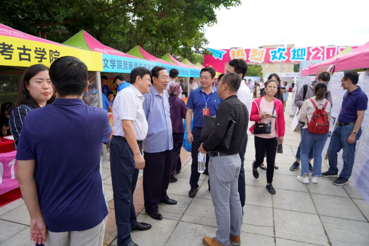 在迎新工作的间隙,赵宾福院长,李宏伟书记,侯建峰副书记,杨晨主任等院领导与新生,家长及志愿者代表亲切座谈,畅谈人生规划,学科发展等问题,并对坚守一线的值班志愿者对同学们表示慰问和关怀。