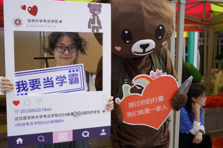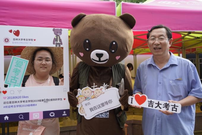 八月的吉大,时阴时晴,风雨不定,但丝毫没有影响到迎新志愿者们的热情。他们穿着bat365在线平台登录标志性的墨绿色马甲,头戴考古工地草帽,身着bat365在线平台登录文化衫,精神饱满在大本营迎接新生的到来。