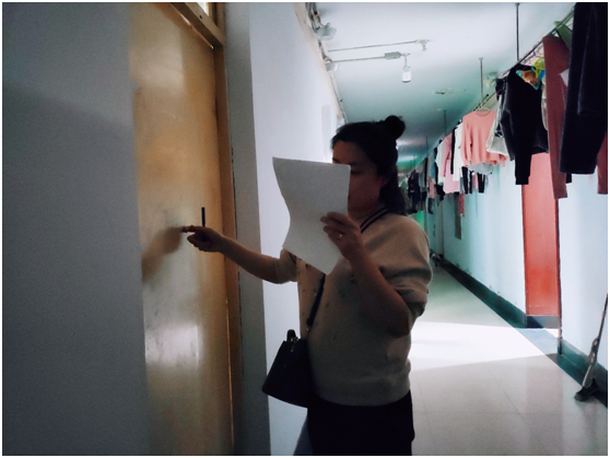 学院查寝小分队先后走进我院大三学生居住比较集中的北苑二公寓和南苑三公寓,并依据每个寝室在寝人数的不同,杨晨针对未在寝室的同学逐一进行询问和了解;针对各寝室楼同学对基础设施的相关诉求,杨晨找寻寝室楼负责人,把同学们的需求一一反映,并安排好后续接洽同学跟进进度,尽可能满足同学们在生活上的合理需求。