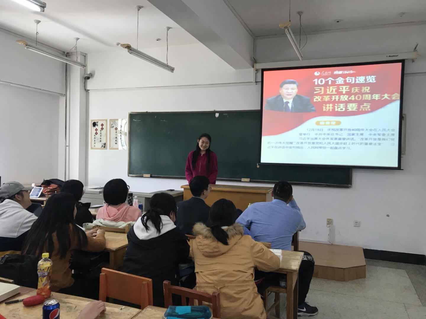 3月28日中午,bat365在线平台登录18级两个班的团支部分别于中心校区逸夫楼302教室组织开展了青年大学习活动,活动主题是“享改革开放成果,担未来发展之责”,本次活动旨在回顾了解改革开放40周年历程与历史成就,明确改革开放的内涵与意义,思考新时代下的改革开放,凝聚学生思想共识,强化学生担当作为。