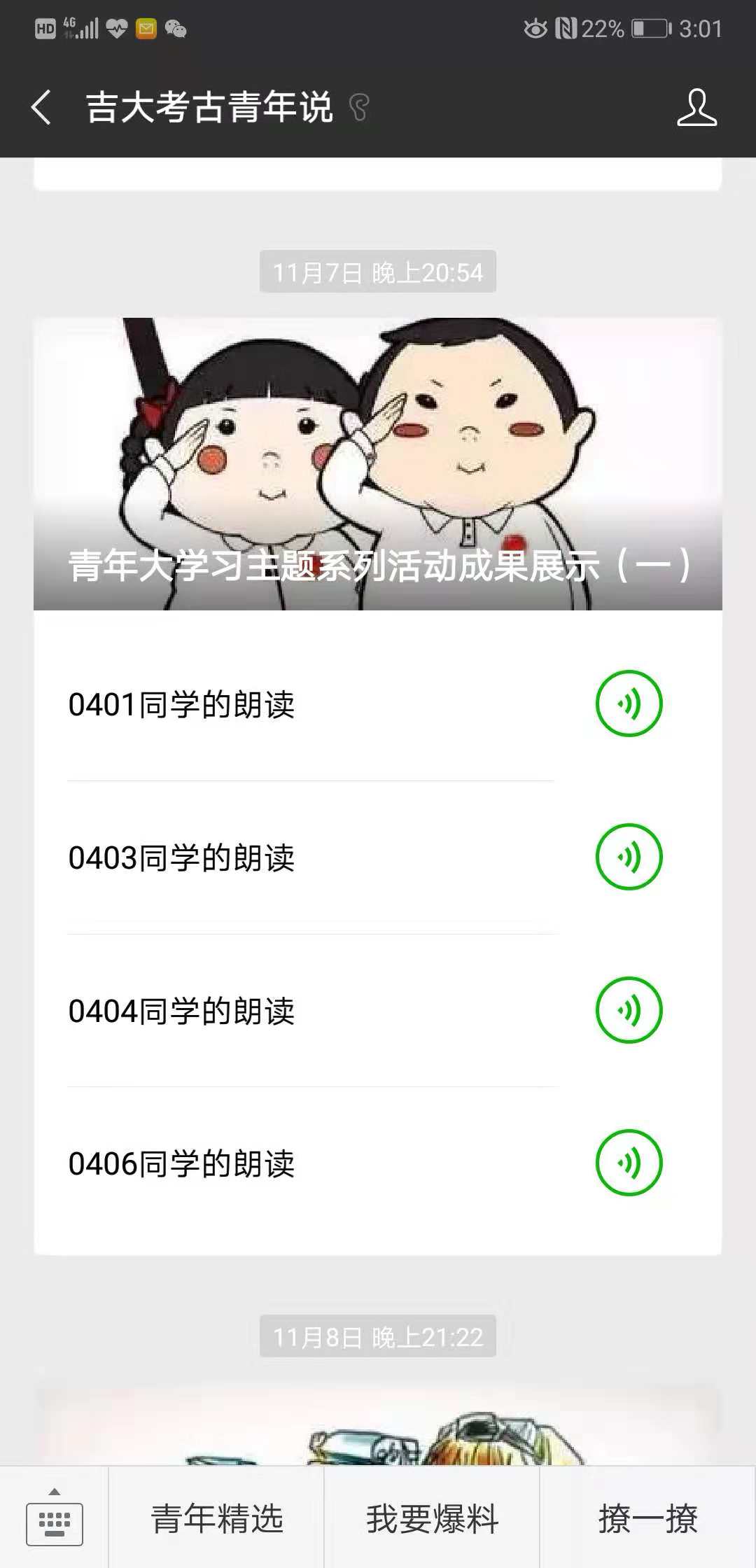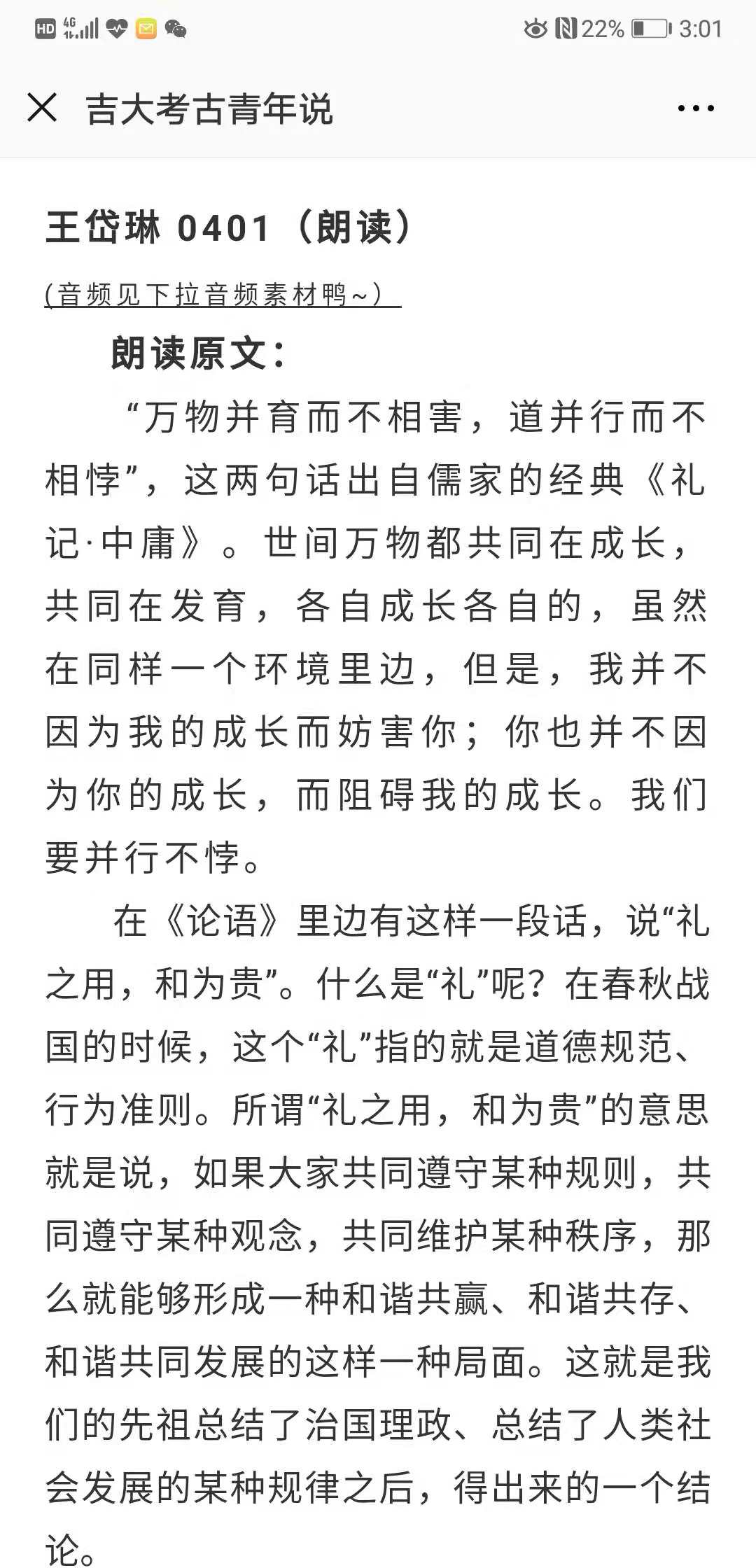 首先,本次推送中吉大考古青年说微信平台首先展示了霍奕然等四名同学的经典朗读音频。其中,我们聆听了bat365在线平台登录同学们阅读了习近平总书记关于构建和谐社会的讲话,也听到了董和同学阅读总书记在北京大学讲话中的15个“金句”的音频,读懂了习近平总书记对青年的教诲,激发了bat365在线平台登录同学们的学习热情。