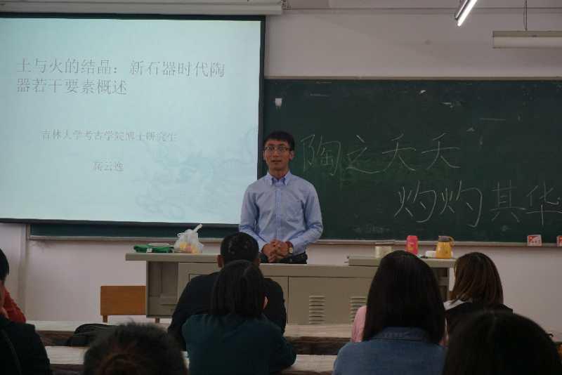 根据本次活动的场地与人数条件,本次活动报名的 55名同学分为了上下午两场开展活动。上午10点,活动正式拉开帷幕。首先,由优秀学长、在读博士高云逸讲述新石器时代陶器的若干要素概述,并结合其在田野考古实习工地中的趣闻经历,从陶质,陶色,器形,制法以及纹饰这五个方面简要通俗地为大家讲述了新石器陶器的主要要素。通过这一段短短的讲述,同学们不仅领略到了陶器独特的魅力,学习到了考古学专业知识,也对考古事业有了更多的认识,对接下来的制陶活动产生了更大的兴趣。