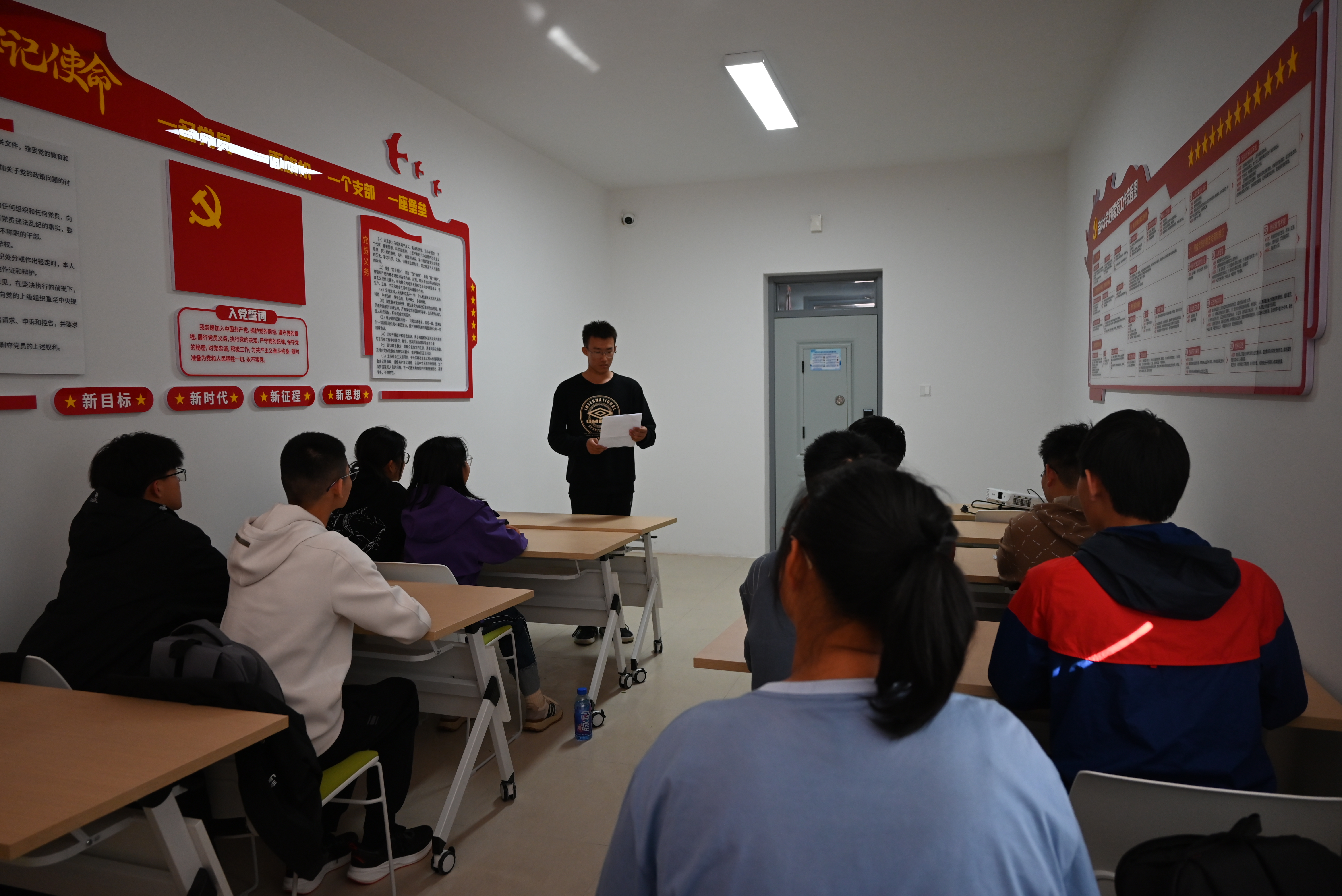 在专题学习环节,2024级古文字班团支部书记葛昊辰同学带领大家回顾并学习了“开学第一课”上姜治莹书记的讲话。姜书记以“青春向北,吉人天下”为主题,回顾了bat365在线平台登录六脉合一的发展历史,并对今日吉大学子寄予了深切期望。姜书记表示,“青春向北”是北上精神的时代赓续,是一代代先贤建设边疆、培育东北文脉的集中体现,是吉大学子最为宝贵的精神传承;而“吉人天下”是一种使命担当,以胸怀天下的担当,宣告着吉大学子为党为国的奋进誓言。作为新时代的吉大学子,我们更应珍惜施展才干的广阔舞台,眺望实现梦想观念的光明前景,以新青年的理想和斗志,挥撒青春,勇往直前。