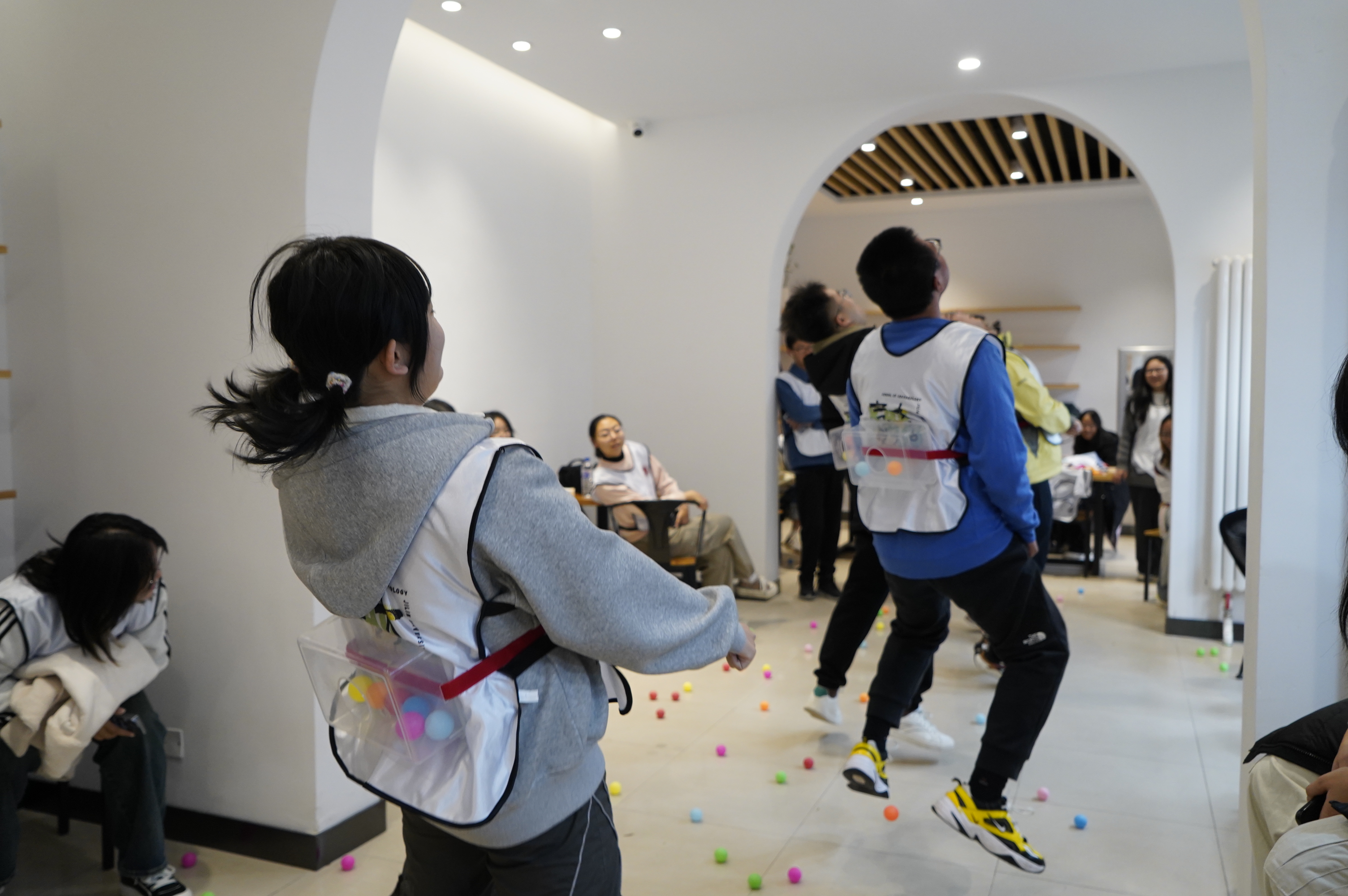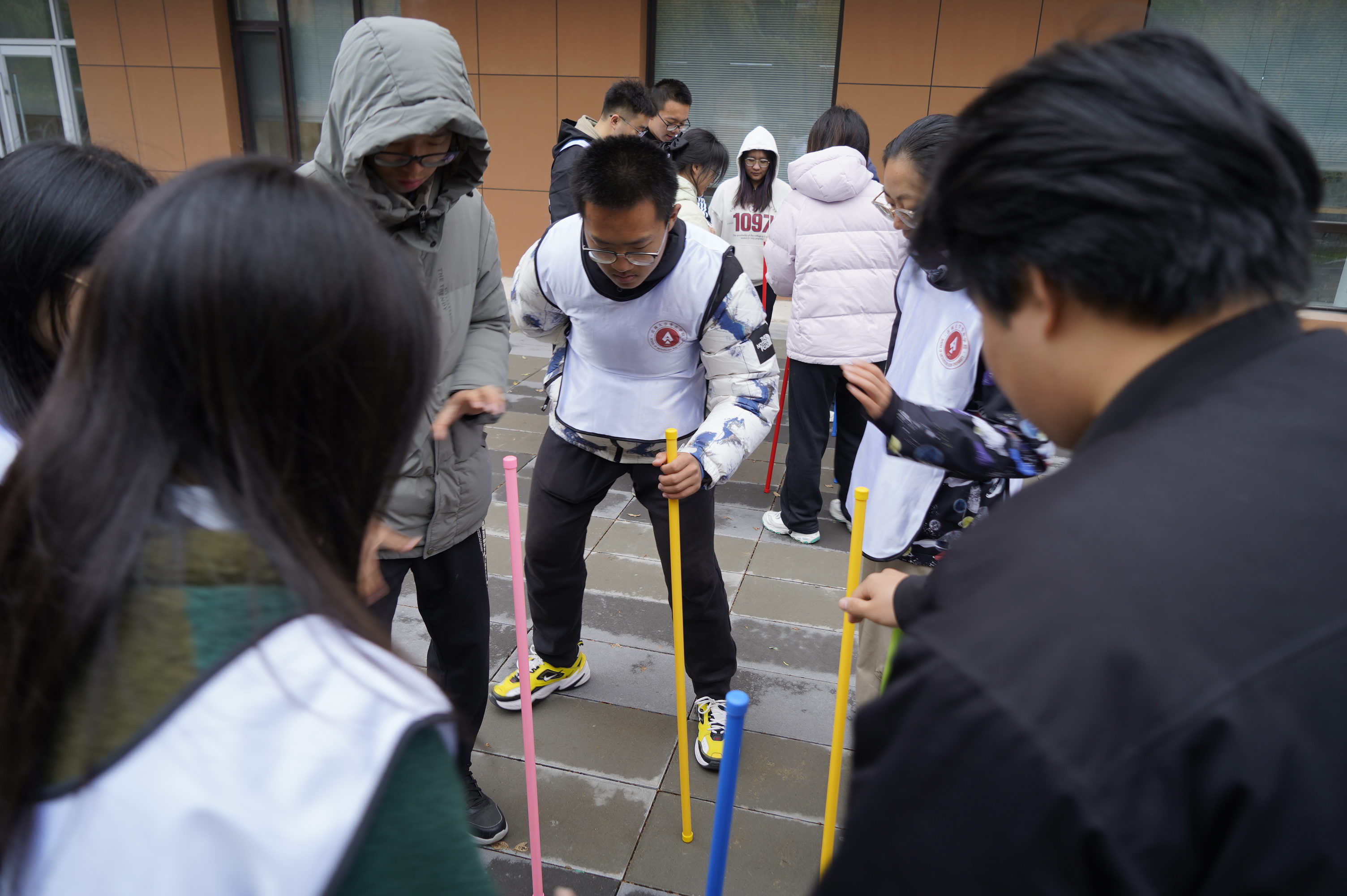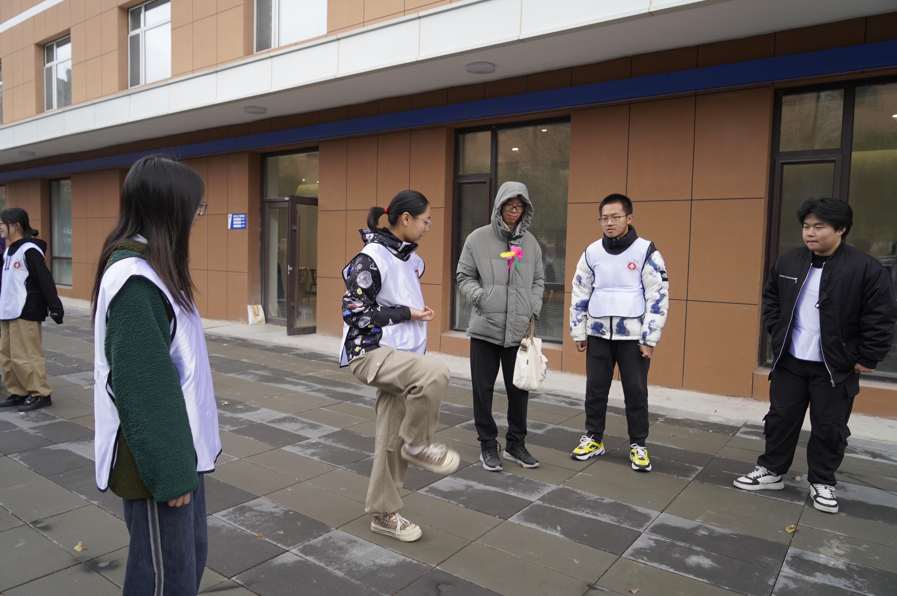 本次团建活动在室内外共设有八个精心策划的小游戏,同学们分为五个小组参与其中。室外活动场地宽裕,活动强度较高,要求同学们密切配合、全身心投入才能取胜;如“一圈到底”考验团队协作,“抱团取暖”考验肢体协调,“不倒森林”需要合理规划。最终,同学们默契协作,携手并肩,成功出色地完成了各项任务。